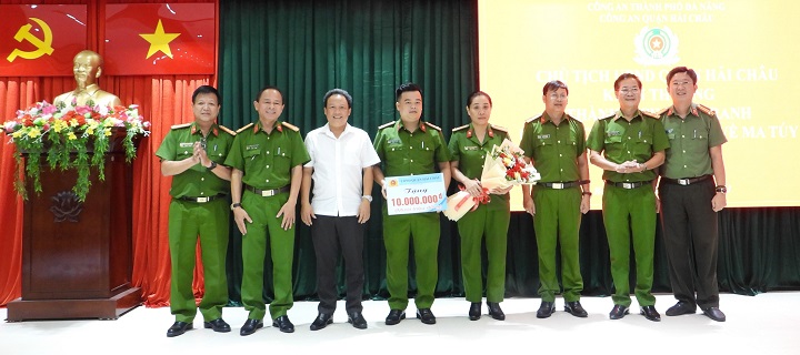 Trưa 26-9, Chủ tịch UBND quận Hải Châu Lê Tự Gia Thạnh đến chúc mừng, động viên và khen thưởng 10 triệu đồng cho Đội Cảnh sát điều tra tội phạm về ma túy Công an quận Hải Châu vì thành tích xuất sắc trong đấu tranh, phòng chống tội phạm và tệ nạn ma túy trên địa bàn.